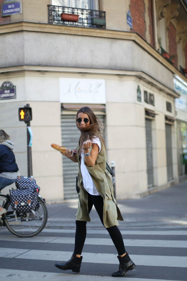 Solo encontramos una pequeña pega a este look fácil de solucionar. Aunque Bartabac combina su maxi chaleco caqui con una camiseta corta, nosotros optamos por un t-shirt oversize de manga larga para este otoño invierno 2015/16. El resto del outfit se tiñe de negro para que la versatilidad see el mayor atractivo del combo.