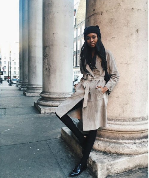 Si prefieres utilizarlo solo en pequeños toques, puedes conseguir un resultado fabuloso con un total look black y una gabardina greige. De esta forma el color de la prenda exterior resaltará aún más todo el conjunto sin necesidad de demasiados ornamentos.