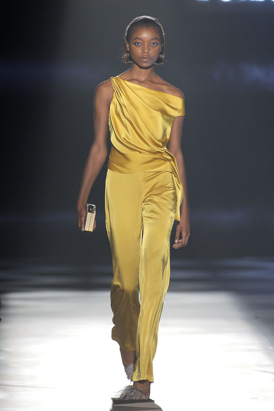 “Puro arte” es el hilo argumental de esta historia que ha desfilado sobre la pasarela este 8 de julio. Menos racional y más apasionada, la colección se ha inspira en el barroco español con tintes de la moda de los años 70, repleta de representativos contrastes.