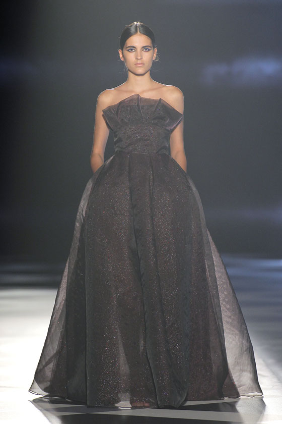 La moda es sueño, y es en las propuestas de noche donde las creaciones van más allá e invitan a soñar… Oscuridad y juegos de luces y sombras dan paso a la expectación, la sorpresa, la búsqueda de sensaciones y el poder de la imaginación. La nueva colección se enfrenta a su realidad, reflejada en formas sobredimensionadas pero verosímiles y acompañadas de detalles sofisticados y elegantes.