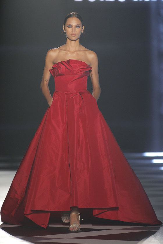Diseños voluminosos, con formas curvas, riqueza de tejidos, variedad de colores y cuidado en los detalles. Una vez más, se vuelve a hacer homenaje al maestro Pedro del Hierro con numerosas piezas inspiradas directamente en sus creaciones, tanto en looks soft evening, noche y Red Carpet.