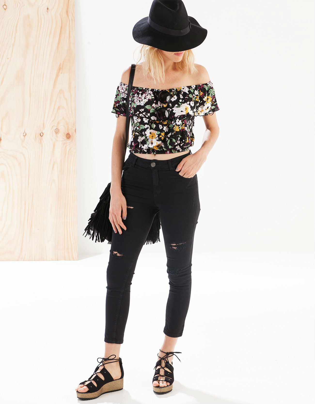 Sí, el estilo seventies está siendo una de las tendencias más fuertes de la temporada y en Stradivarius está calando más hondo que en ninguna otra cadena. Pasarelas, Street Style, tiendas…No podrás resistirte a llevarlo durante las 24 horas del día. Como ya hemos dicho, la firma ha apostado muy fuerte con esta estética y son muchos los looks que ha elaborado basándose en blusas de escote bardot, bolsos de flecos, pantalones palazzo con increíbles prints y faldas con botones centrales. Por ello, te enseñamos estos cuatro outfits tan hippies pero tan ideales a la vez.
