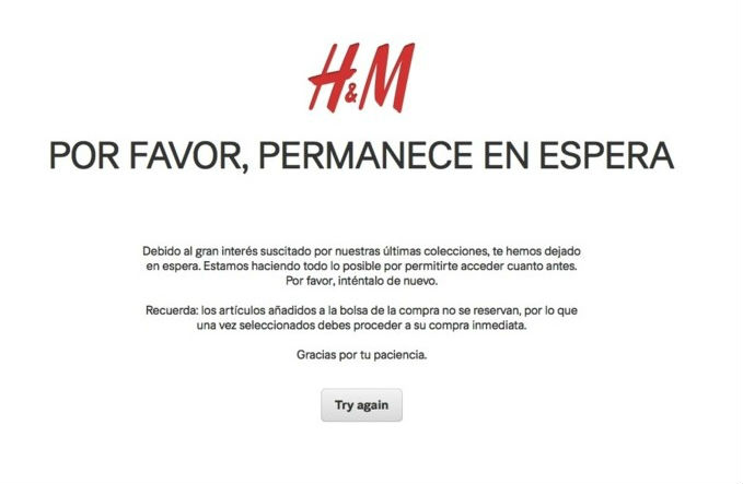Esta ha sido la imagen que aparecía en nuestras pantallas cuando hemos querido echar un vistazo a la colección de Balmain for H&M en la shop online. A las 9:30 de la mañana la página web del gigante sueco se ha visto colapsada ante la multitud de clientes que querían comprar algunas de las prendas o accesorios de la colaboración.