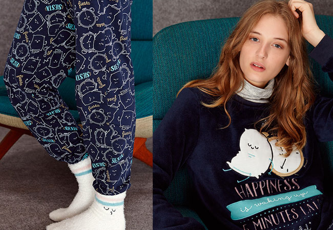 Tic, tac, tic, tac…¡Es hora de levantarse! Mr. Wonderful y Oysho apuestan siempre pro la diversión en cada uno de sus artículos, como esta sudadera y pantalón que combinan un estampado súper tierno. Así sí que nos gusta estar cinco minutos dentro de la cama.