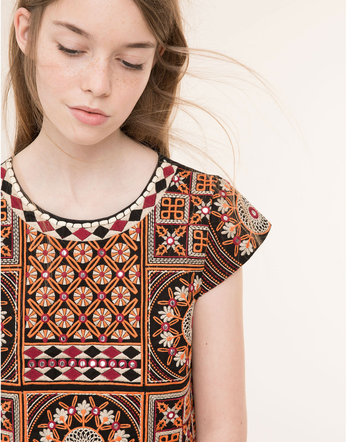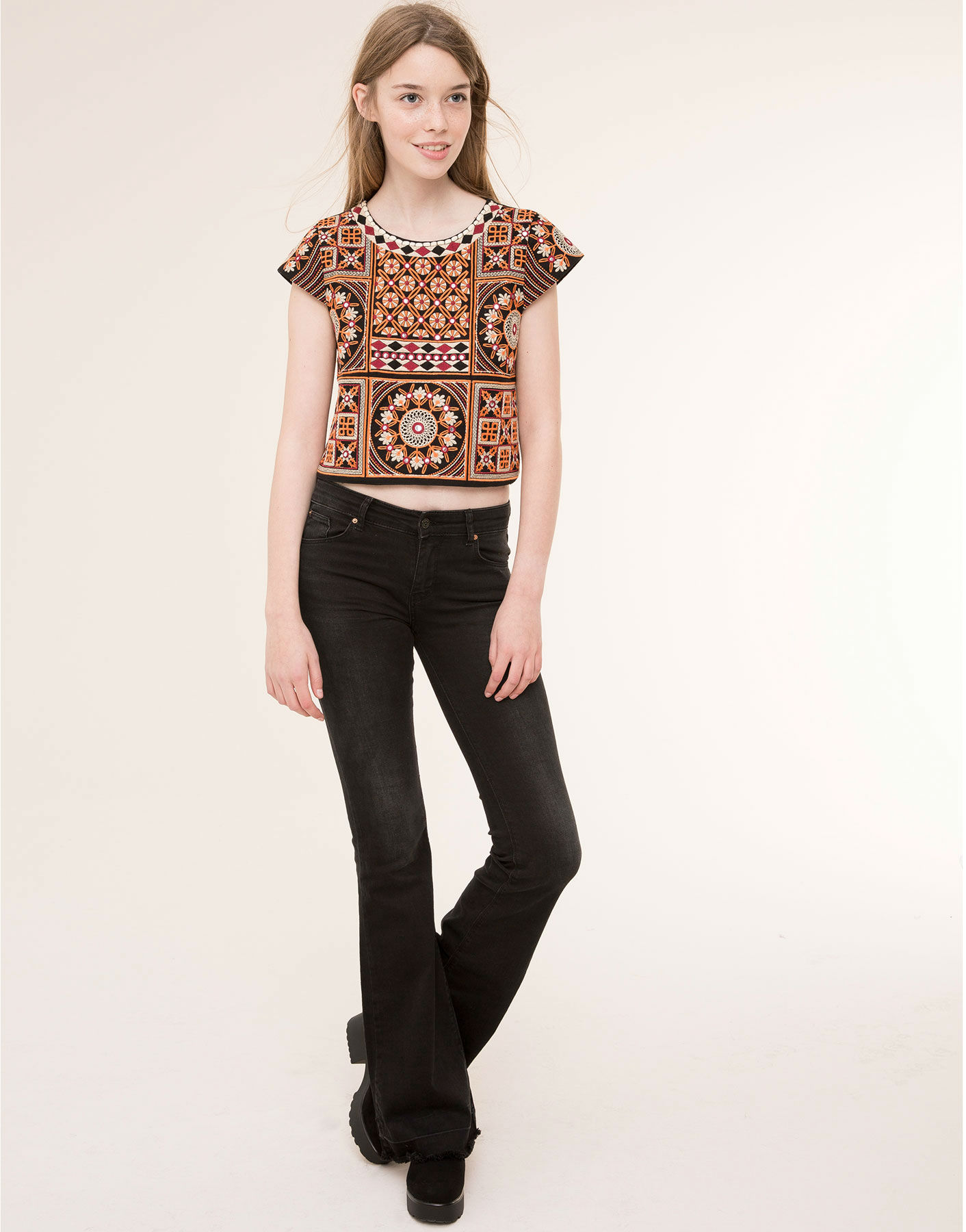 Otra de las firmas que cuenta con un top de estilo étnico es Pull and Bear. Una de las cadenas más teen de Inditex escoge como must have este top crochet con bordados a un precio de 25’99€. Además, también dispone de una falda a juego para crear un perfecto look de dos piezas.