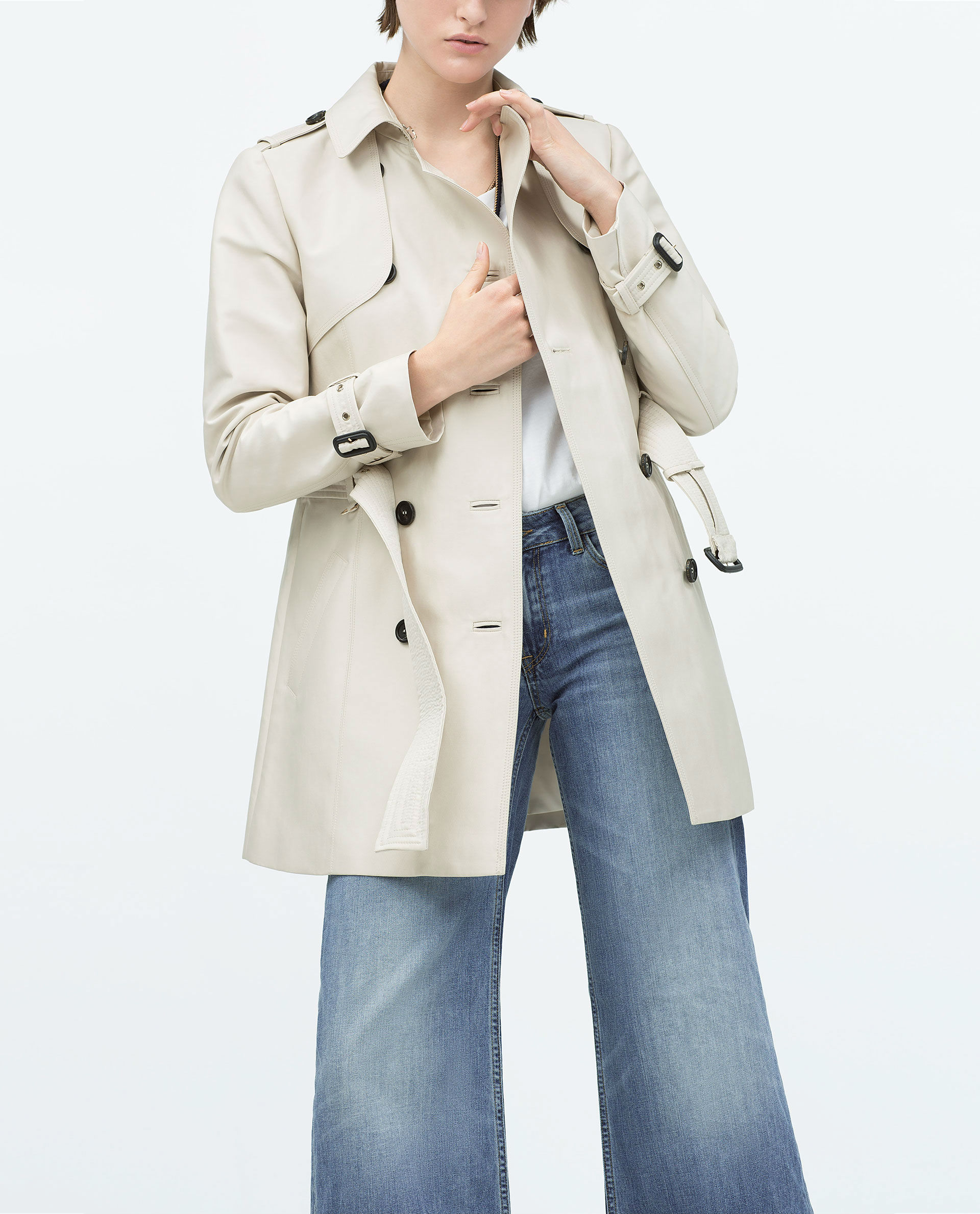 El espíritu inglés se refleja en un trench en color nude con botones y cinturón, un clásico infalible.