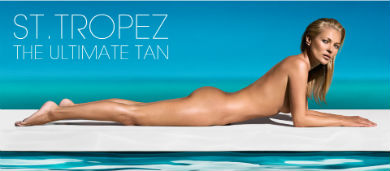 La modelo de 39 años, Kate Moss, posa desnuda para la campaña publicitaria de los autobronceadores St. Tropez.