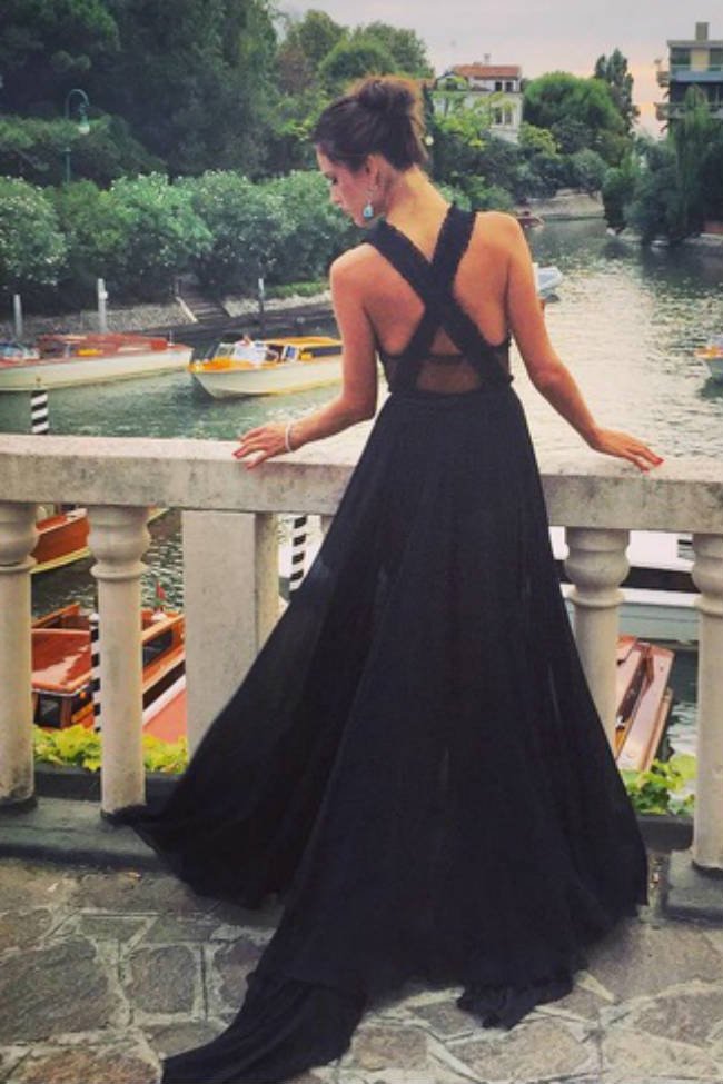 Alessandra Ambrosio, lució espectacular durante la alfombra roja del Festival del Cine de Venecia 2015 con tres vestidos vaporosos y un mismo posado.