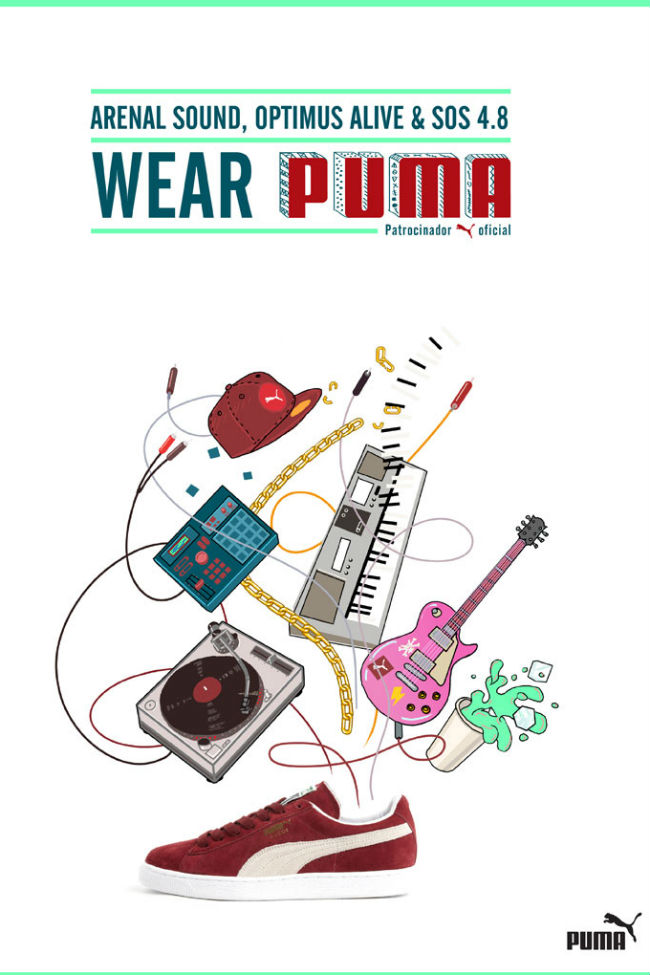 Más que una marca de deporte, PUMA es un forma de entender la vida, relajada, actual y trendy. En el 2012 la marca inició su apuesta por la música con los PUMA Social y desde entonces está presente en varios de los principales festivales de música del mundo. Para España y Portugal ha elegido el SOS 4.8, el Arenal Sound y, en el 2013, incorporó el NOS Alive, antes Optimus Alive.