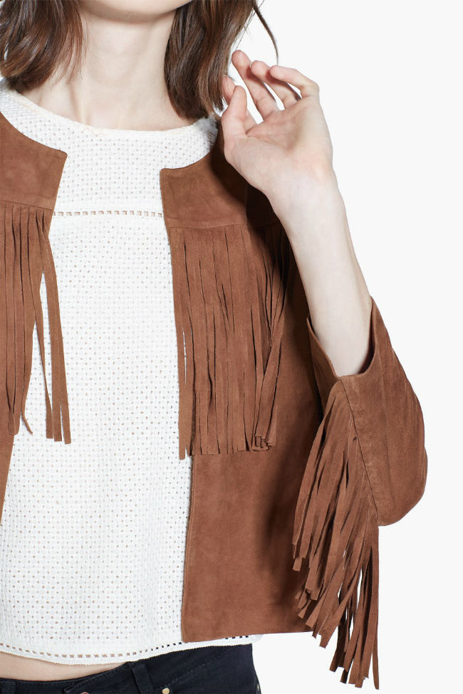 El ante en chaquetas, faldas, vestidos y bolsos protagoniza las novedades de Mango colección primavera- verano 2015