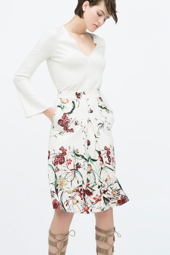 Faldas midi estampadas en las novedades de Zara colección primavera- verano 2015