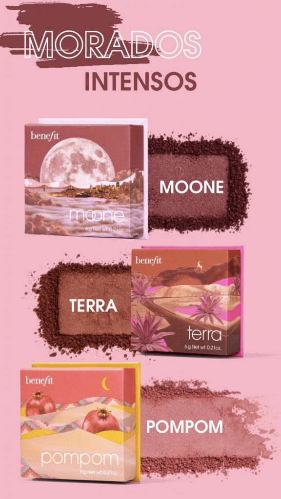 Y por último, los tonos más intensos, los morados Moone, Terra y Pompom. Moone es un tono morado con acabado satinado mientras que Terra, es un rubor tierra dorado con un ligero brillo. Por su parte Pompom, es el único colorete mate de esta categoría y el segundo de toda la colección. Inspirado en la fruta de la granada, es el rubor perfecto que podrás modular y utilizar en tus looks más naturales hasta los más potentes.