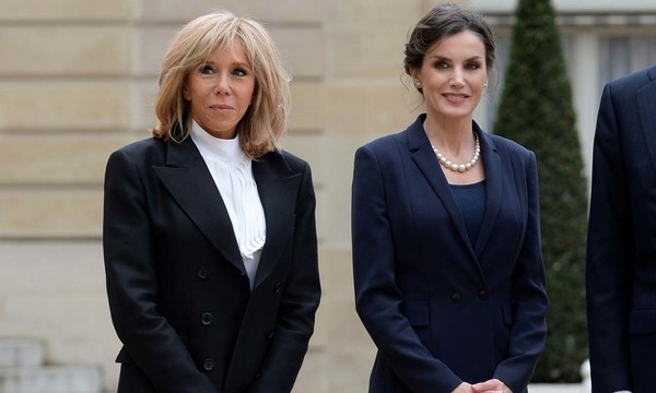 Pero el mayor secreto de la Reina Letizia que ha quedado al descubierto y que, las que no lo utilicen lo harán a partir de ahora, es la ropa interior para protegerse del frío. Letizia ha dejado hoy ver, que debajo de su camiseta de escote redondo llevaba una interior, seguramente para resguardarse de las bajas temperaturas que acechaban hoy en la capital francesa. La dama francesa, mujer de Emmanuel Macron se decantaba por un jersey de cuello cisne y un abrigo. Tras el almuerzo, la Reina Letizia sí que tiró de abrigo con cuello de pelo y foulard para el cuello resguardándose del frío de la ciudad del ‘Amour’.