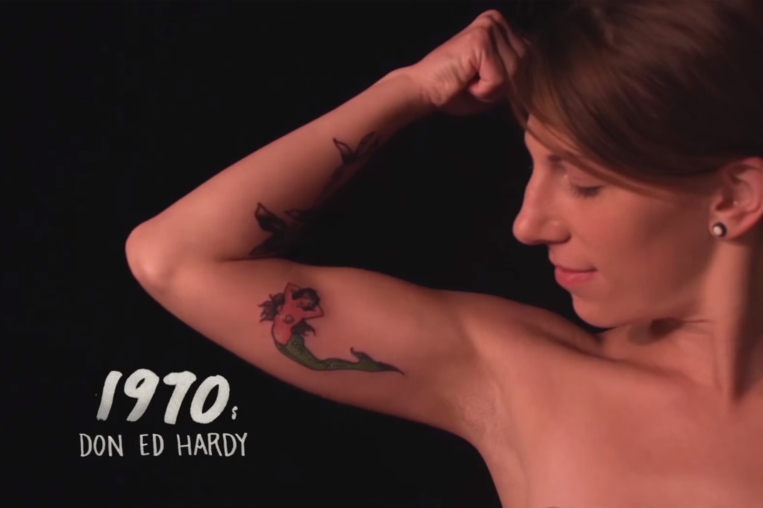 Y para finalizar, Cut también mostró la evolución que han tenido los tatuajes, aunque únicamente se centra en USA. Su vídeo sobre esta cuestión no es apto para la gente que tiene belonefobia ya que en diversas partes se muestra la forma en la que se hizo el tatuaje, no obstante la imagen que se muestra a continuación en representación al vídeo no tiene ningún problema para la gente que sufre esta clase de fobia.