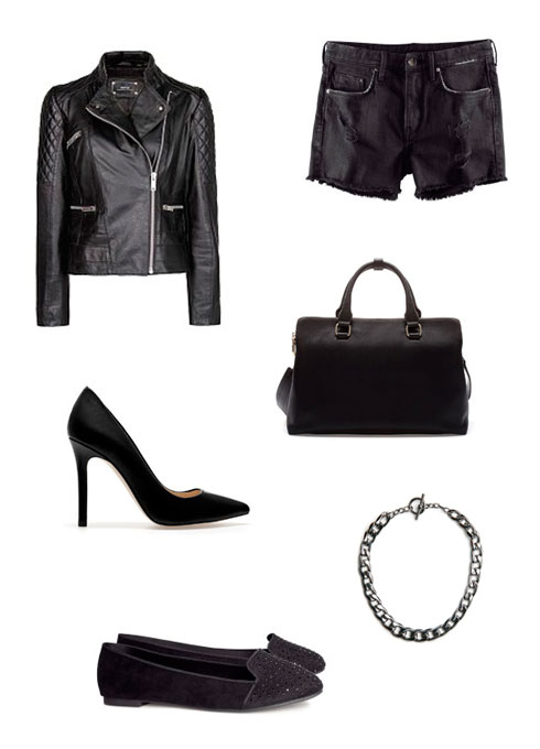 Este año es tendencia el estilo rockero, prendas de cuero negras que nos aportan un toque desenfadado a cualquier look. Con esta chaqueta de cuero de Mango y estos shorts de H&M tendrás dos básicos de armario para completar todos tus looks diarios.