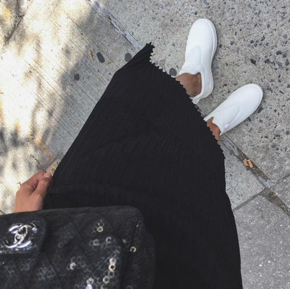 ¿Y con deportivas? ¡Por supuesto! ¿Por qué no? The Fashion Guitar y Camtyox no han dudado en calzarse unas slip ons de Céline o unas simples sneakers. Puede parecer arriesgado, pero es la solución perfecta para conseguir un look Sporty Chic, apostando por la comodidad y el estilo.