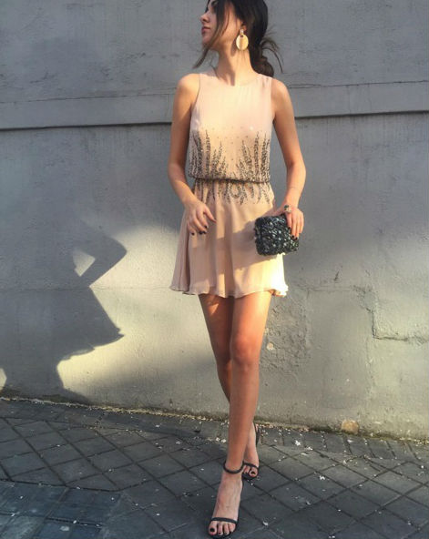 No podíamos no mostrarte alguno de sus looks con vestidos cortos. Turiel es fan incondicional de los colores neutros para este tipo de diseños, como el maquillaje. Con drapeados o con apliaciones joya, da igual porque ella sabe combinarlos a la perfección con sencillas sandalias de tacón y bolsos de mano espectaculares.