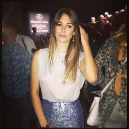 Estuvimos con Blanca en el Front Row del desfile de Etxeberría y Rabaneda en la pasarela madrileña Mercedes Benz Fashion Week. Eligió para la ocasión un estilismo de mini falda azul metálica y camiseta gris sin mangas. Estupenda!