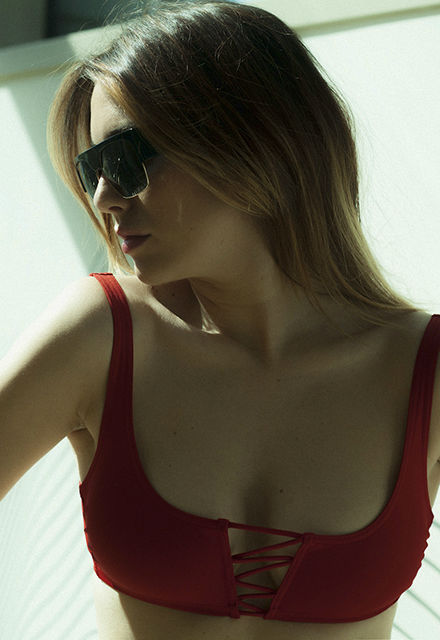 El top del biquini de la marca Eres nos ha enamorado tanto por su color rojo como por el original escote cruzado.