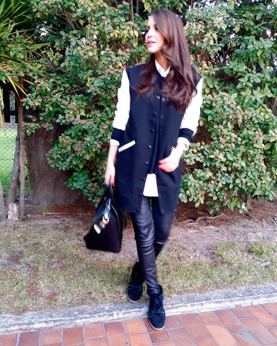 “La versión más larga de este tipo de chaquetas que a mi particularmente me encantan, me parecen súper favorecedoras y perfectas para crear outfits con un punto university!”, comenta la protagonista de Velvet.