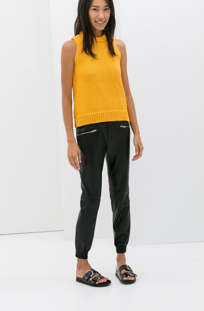 Si prefieres un pantalón parecido sin cremalleras, nosotros te proponemos este también de Zara (29’95 €)