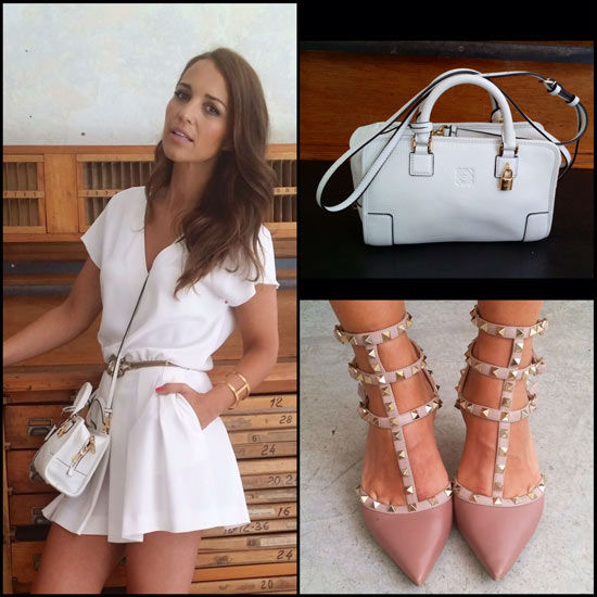 Mono de Tara Jarmón de Cool The Sack (disponible en su App), con bolso blanco de Loewe,cinturón joya de Bgo&Me, anillos de Thomas Sabo y brazalete de Maramz.