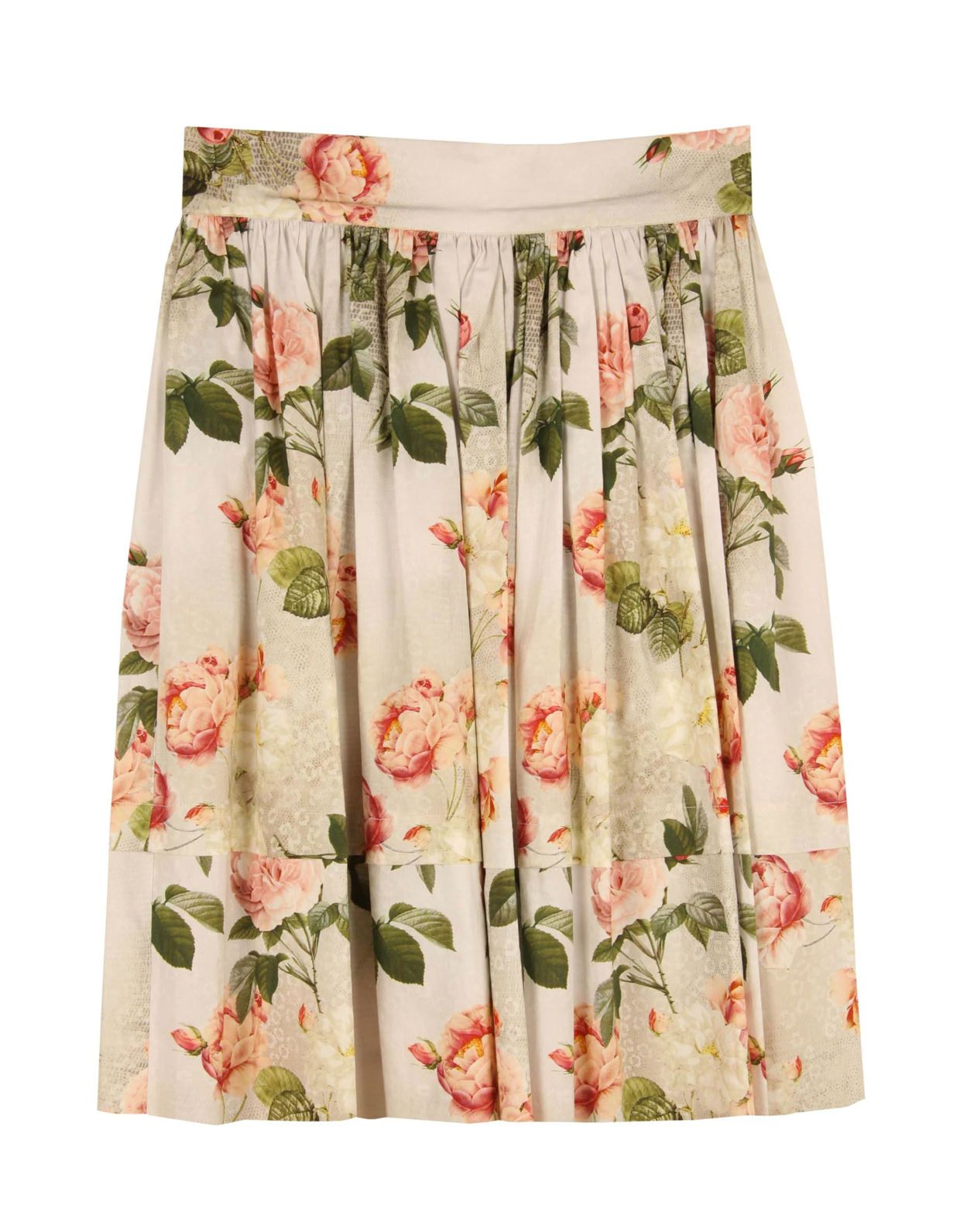 El print de flores en tamaño XL, los colores pastel, el vuelo en el corte de la falda o el cuello bebé de la camisa son los grandes aliados de este look femenino y a la vez elegante.