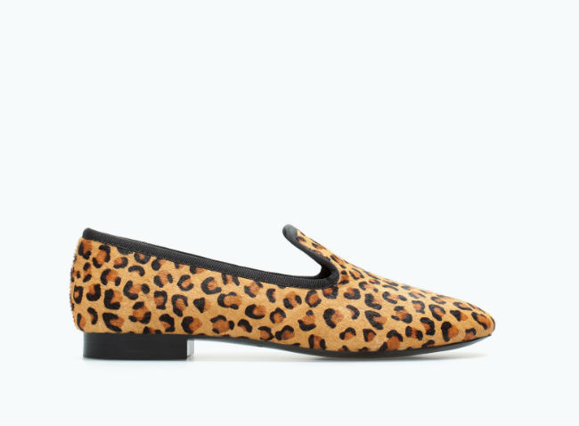 El animal print pisa fuerte esta temporada convirtiéndose en uno de los estampados estrella. Aderezado con un look sencillo, los slippers (39’95€ cada uno) aportan un punto de color a un estilismo en blanco y negro.