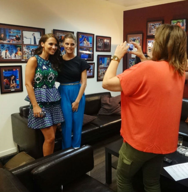 En esta ocasión la actriz y blogger optó pero falda y top de peplum de MANOUSH de FETICHE SUANCES, con sandalias de GUESS en morado y joyas de TOUS. Decidió llevar el pelo suelto con ondas ya que la última vez que acudió al programa llevaba una coleta.
