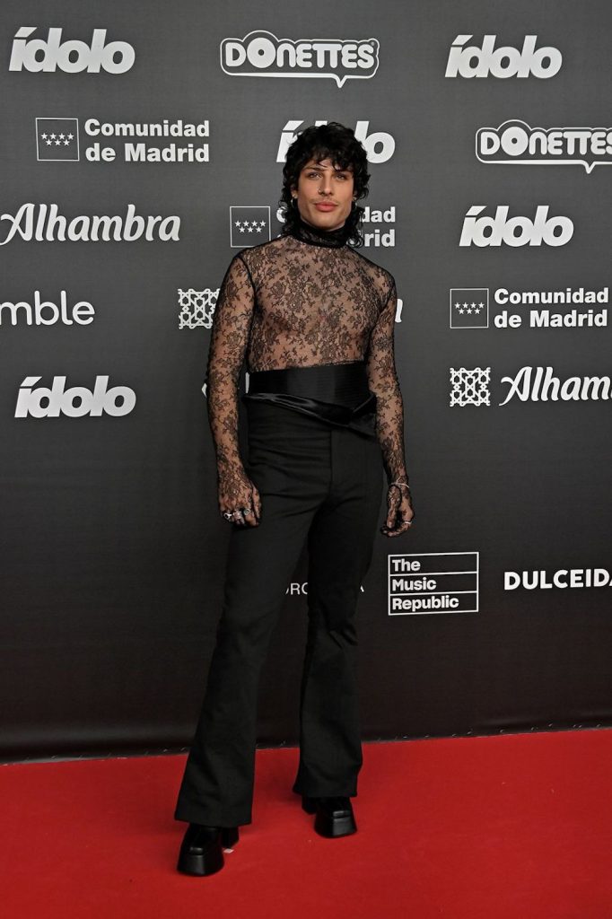 Fue uno de los galardonados de la noche, pero si algo sorprendió más que su logro, ese fue su look. Optó por una camisa blanca y corbata negra para dar mayor atención a la biker oversize negra y los pantalones anchos del mismo color. Este impacto se debe a que Nil rompió con su estilo cotidiano e incluso con los estilismos con los que había aparecido en otras galas pasadas. Sin duda, uno de los más comentados de los Ídolo 2023.
