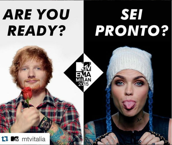 Los encargados de presentar esta edición de los MTV EMAs 2015 serán Ed Sheeran y Ruby Rose, acompañados del rapero británico Tinie Tempah, la modelo Hailey Baldwin y Charli XCX, que entregarán varios premio durante la noche.