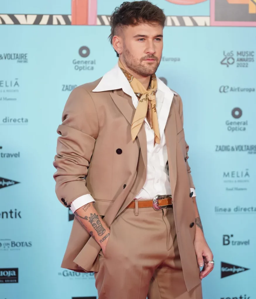 Dani Fernández ha sido elegido mejor artista y no solo ha triunfado con sus canciones y su inolvidable discurso, también lo ha hecho vistiendo un elegante traje marrón para el photocall de la alfombra roja.