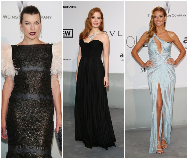 Los looks fueron de lo más variados, desde el clásico vestido negro de nuestra representante española Paz Vega, Dita Von Teese o Jessica Chastain hasta el metalizado con un amplio escote de Heidi Klum.