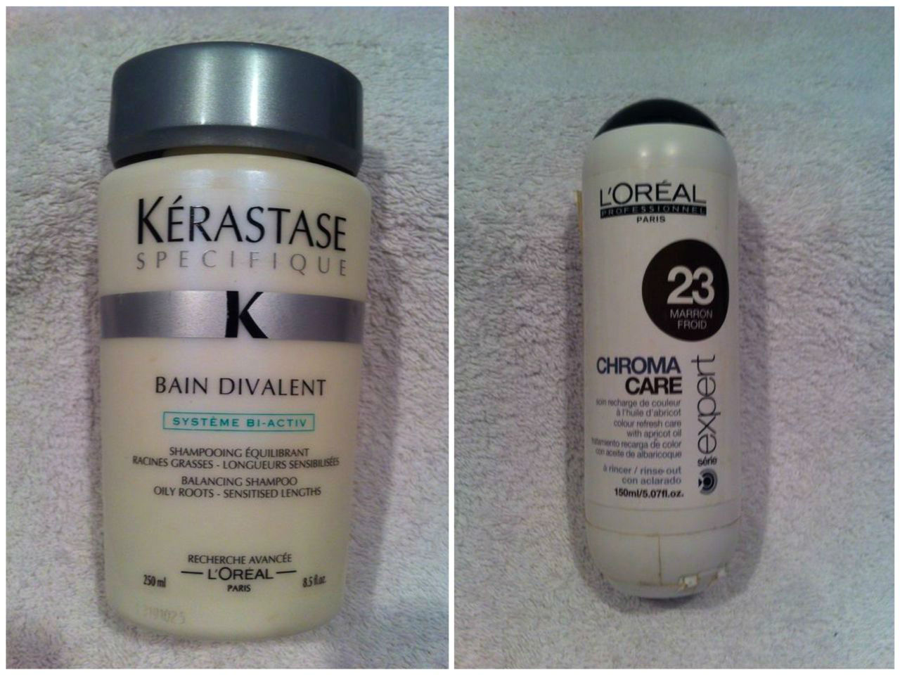 Champú de Kerástase para evitar que las raíces se engrasen con facilidad y una mascarilla con color de L’oreal.