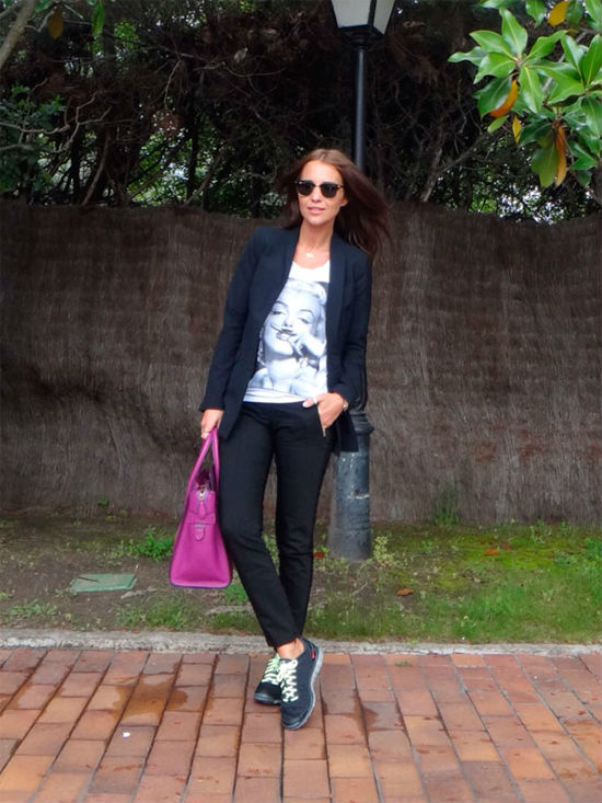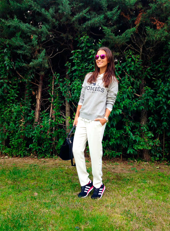 La guinda del Sporty Chic es mezclar productos inspirados en el deporte con otras más chic, como unas zapatillas running unidas a unos pantalones de pinzas, por ejemplo.