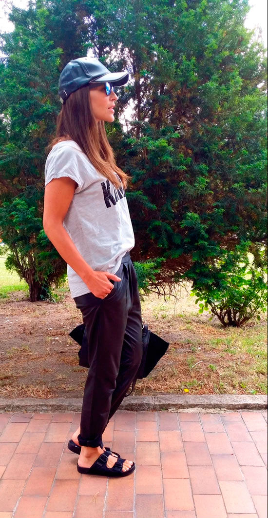 Paula Echevarría sigue esta tendencia al pie de la letra llevando en sus outfits los accesorios y productos más signifitcativos de esta estética: las deportivas o los pantalones jogging.