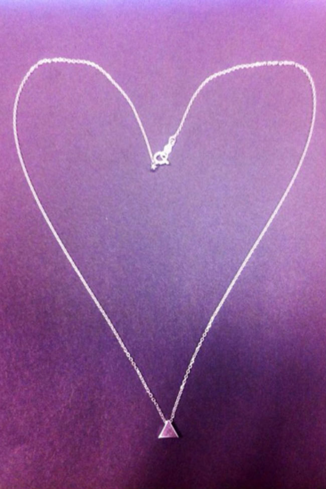 Para Sara en joyas y en moda “menos es más”, por eso le gusta tanto este collar de plata con un triángulo pequeño.