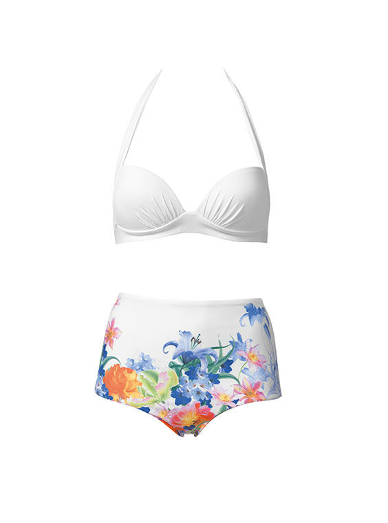 En Calzedonia apuesta por las rayas en tonos verdes, el rosa y el blanco con flores de distintas tonalidades. Tres modelos a la última y muy favorecedores.