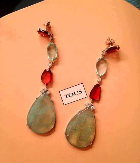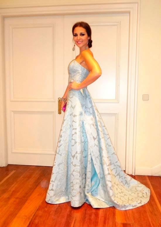 Para la fiesta los Goya escogió unos pendientes de Tous que conjuntaban con su vestido color azul bebé.