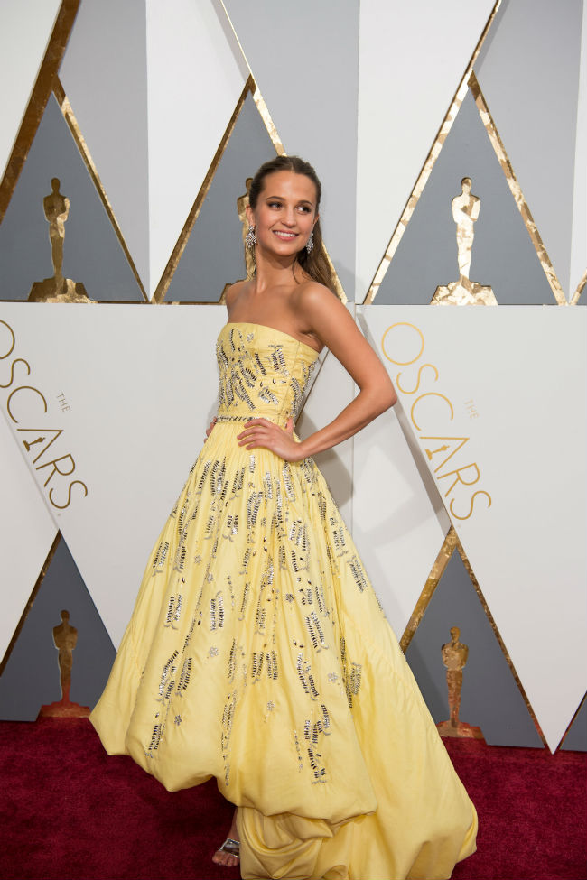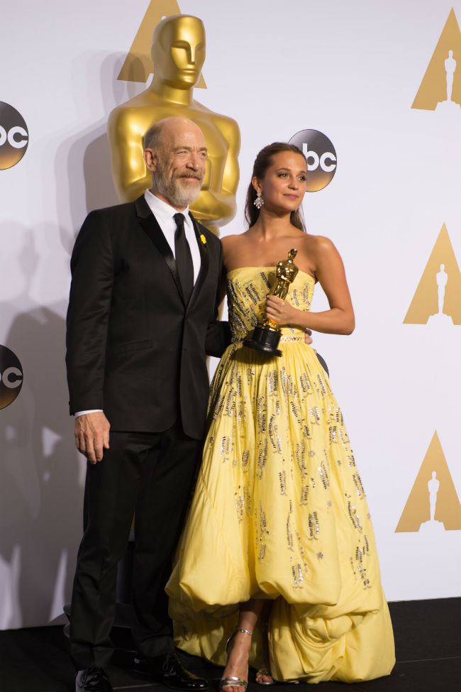 Ha quedado claro que Vikander no es fan de las supersticiones puesto que ha ganado el premio enfundada en un diseño amarillo. La actriz recogía el premio visiblemente emocionada de la mano de J.K. Simmons, que también ganó dicha estatuilla en la edición anterior.