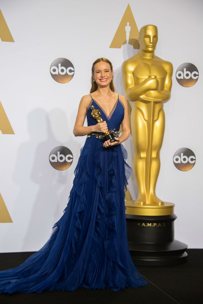 Brie Larson con un vestido azul de Gucci gana el Oscar 2016 a mejor actriz por La habitación