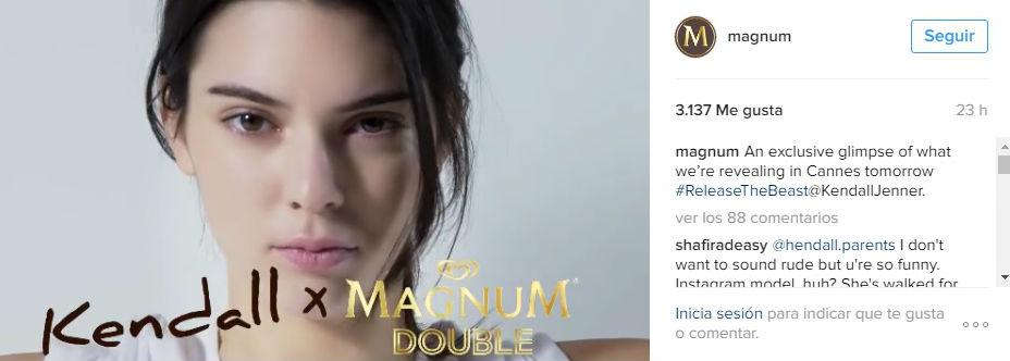 Victoria’s Secret, Estée lauder, Givenchy, Balmain, Chanel, Mango…El 2015 ha sido un año de lo más especial para la hermana de Kim Kardashian. Su belleza y los más de 56 millones de seguidores en Instagram han encumbrado a Jenner como una de las modelos más cotizadas del momento. Ahora suma a su currículum esta campaña para Magnum.