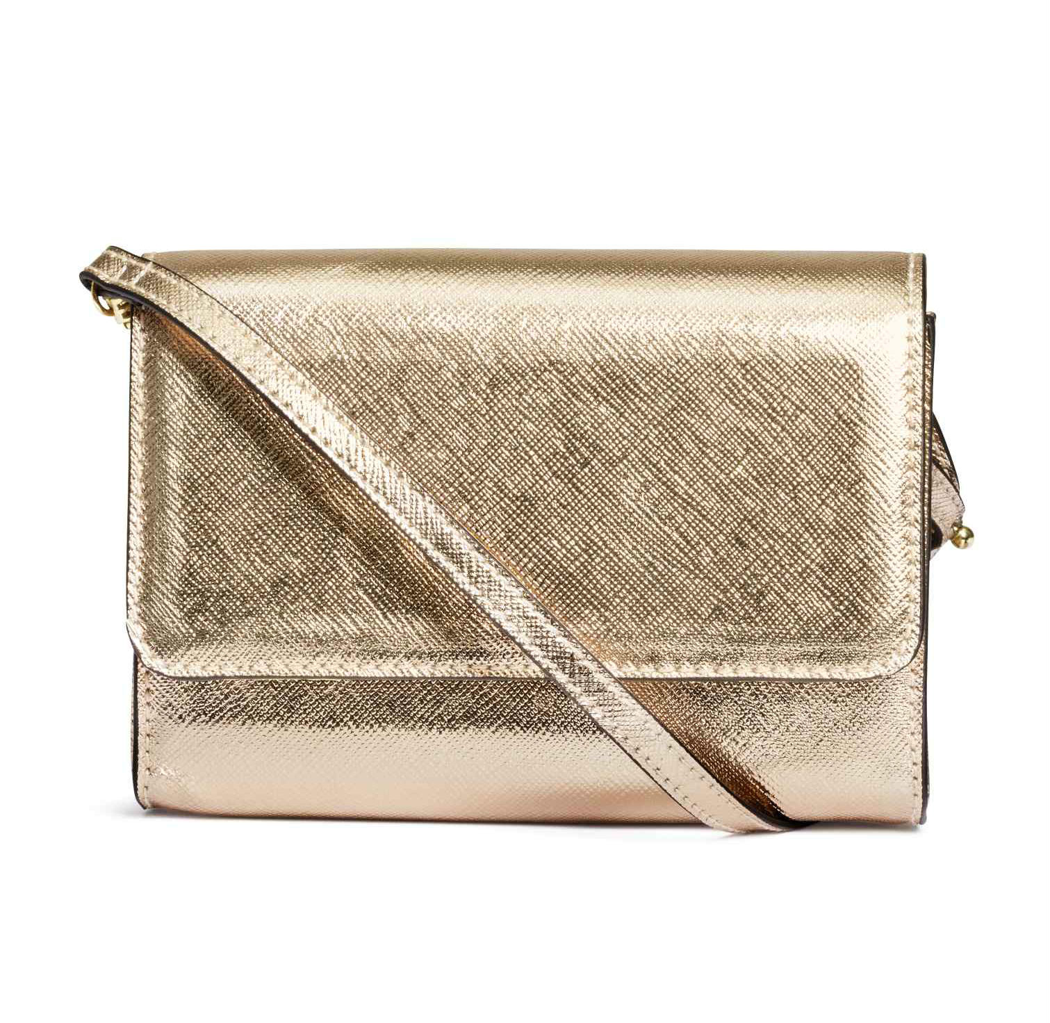 Bolso bandolera pequeño en piel sintética grabada. Solapa con cierre magnético y correa fina ajustable de H&M (9’99€)