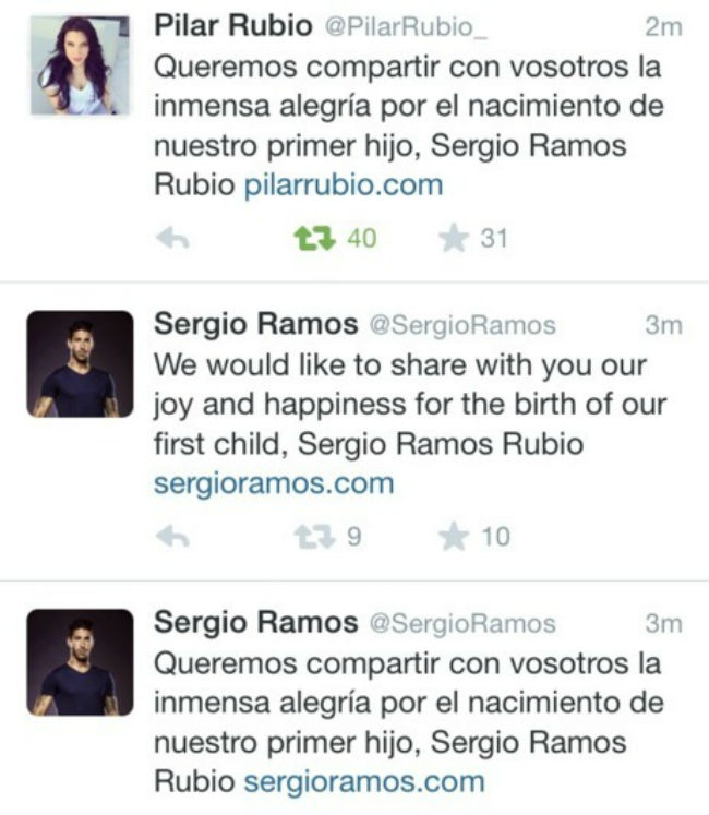 En sus respectivas páginas web publicaron un comunicado en el que indica que Pilar Rubio se encuentra perfectamente y que el pequeño Sergio nació a las 19:43 y su peso fue de unos 3’2 kg. Agradeciendo a los medios de comunicación el apoyo y el respeto que han mantenido.