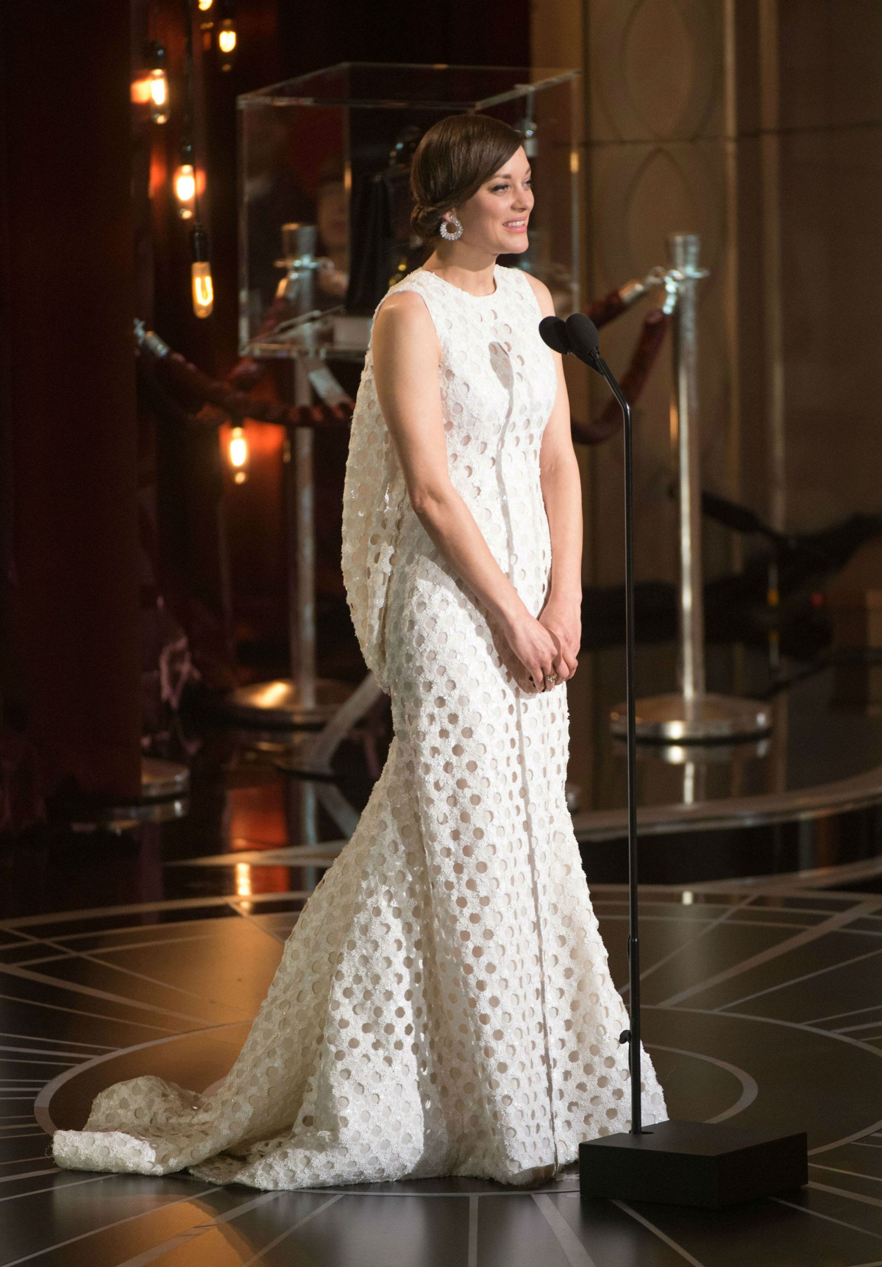 Como imagen de la casa francesa Dior, la actriz Marion Cotillard apostó por la firma para lucir un vestido blanco troquelado que no fue de los favoritos. Aunque el binomio ‘Black&White’ es tendencia desde hace varias temporadas, el look en sí no destaca tanto por los colores como por no favorecer su figura.