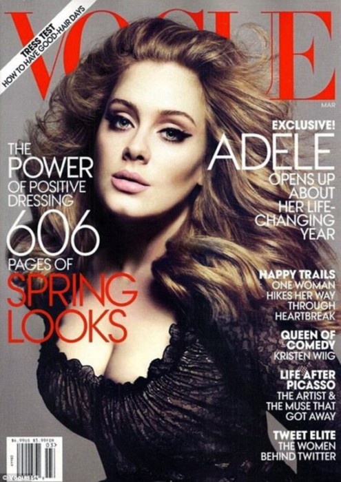La portada de Vogue Usa de marzo 2012 está protagonizada por la cantante Adele. Y es que Adele está de moda, no sólo por su música sino por su estilo, belleza y elegancia.