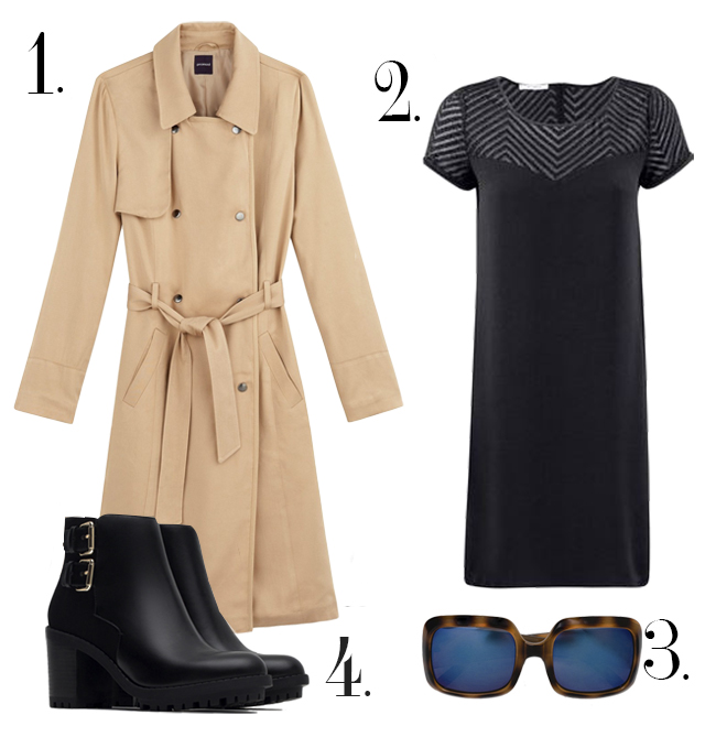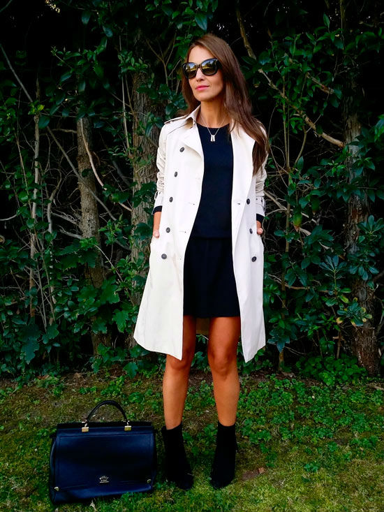 El trench se declara fan del estilo british, una prenda perfecta para el entretiempo y que nunca falla tanto por su tonalidad como por su esencia. Desde que Thomas Burberry creara el primer modelo en los años 20, el trench coat es un indispensable que casa a la perfección con un vestido negro. Para rematar el outfit, emplea unos botines de tacón y unas gafas con lentes de espejo y montura de carey.