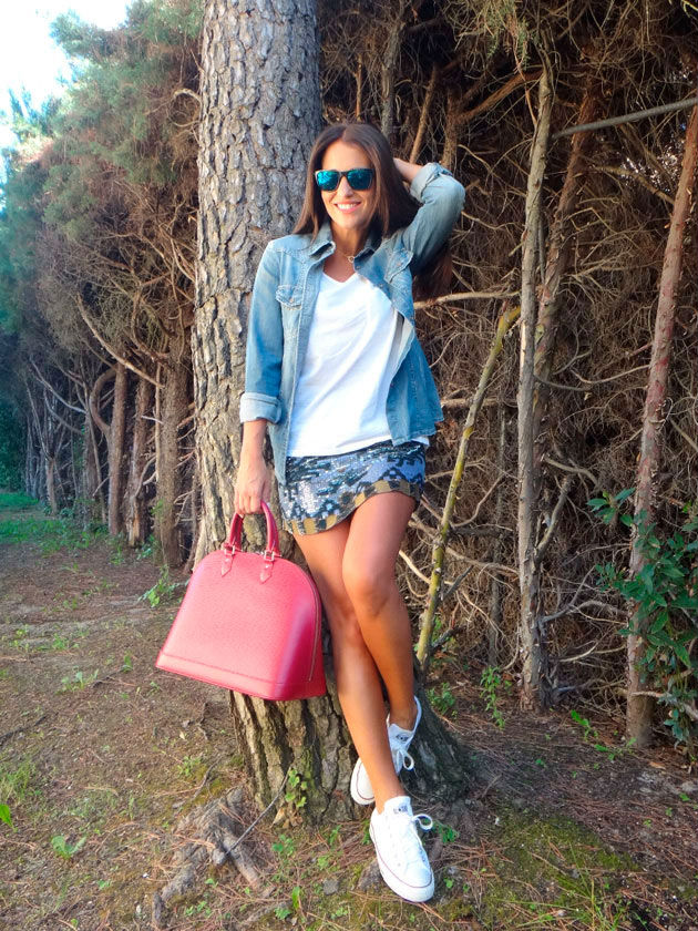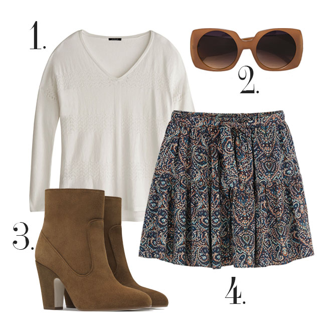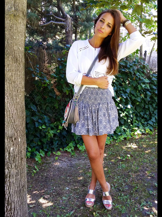 Aprovecha para calzarte una de las tendencias más ‘in’ del momento, los botines. Combínalos con un fresco sweater calado, una falda de vuelo estampada multicolor y unas divertidas gafas de sol retro. ¡El resultado te encantará! Aunque la It Girl ha combinado su conjunto con unas sandalias metalizadas, nosotros apostamos por un calzado cerrado.