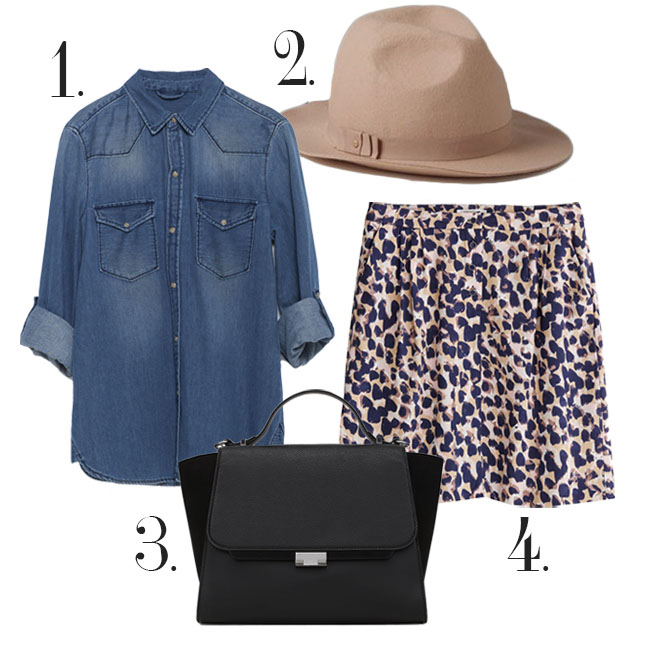 Para los días non-stop es necesario optar por un look casual y cómodo, esta propuesta que te mostramos será la mejor opción. La guinda de este combo llega de la mano de una falda con print, mientras que el punto desenfadado lo aporta la camisa en denim. Emplea un sombrero y un bolso trapecio en color negro, dos básicos que nunca fallan ¡La clave está en la sencillez!