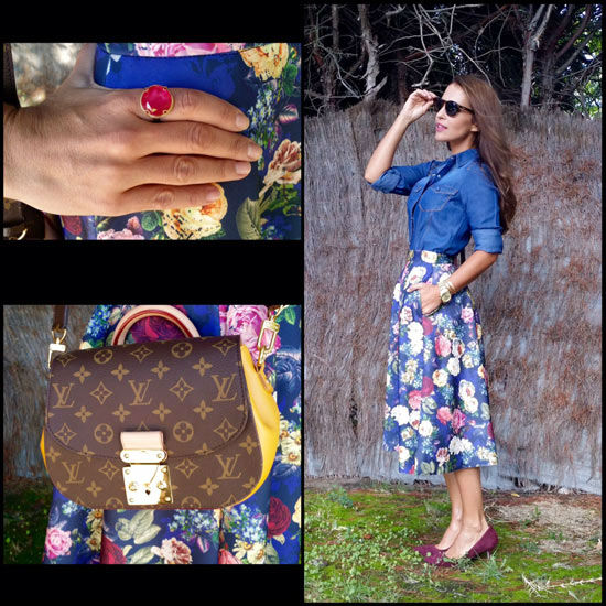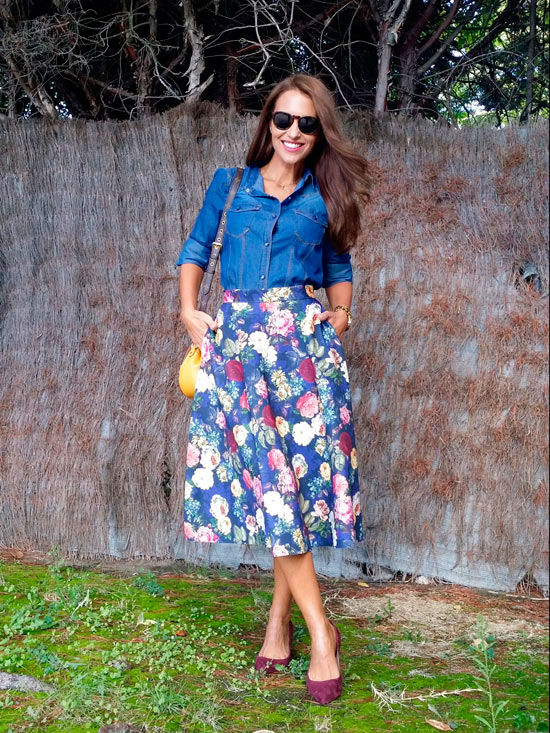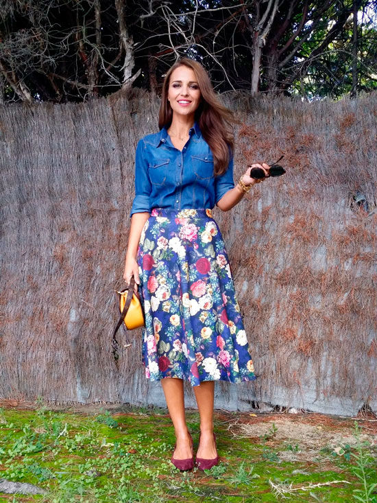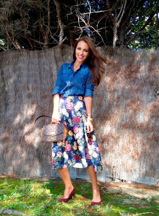 “Adoro las faldas midi, me parecen muy femeninas y muy elegantes. Ésta tiene otros tres factores que me encantan, el estampado floral en colores otoñales preciosos, que es de neopreno y que tiene bolsillos que ya sabéis que son mi punto débil en faldas y vestidos”, comenta la asturiana en su blog para la revista Elle.